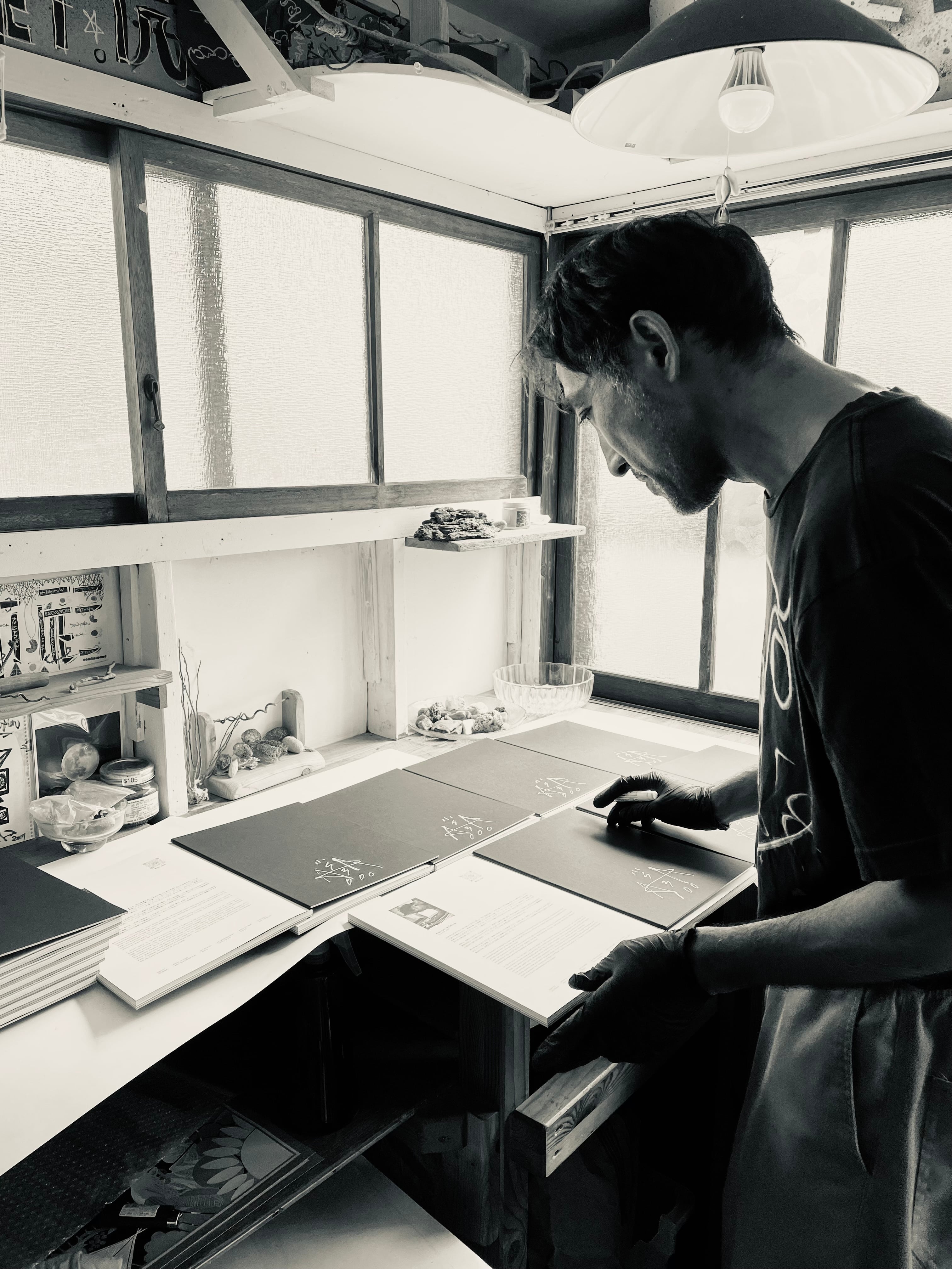 彼の描くアートはもちろん、コラージュ、スノーボードライディングでのカメラマンとの作品など、彼の長年にわたる活動の証が詰まっている保存版の一冊です