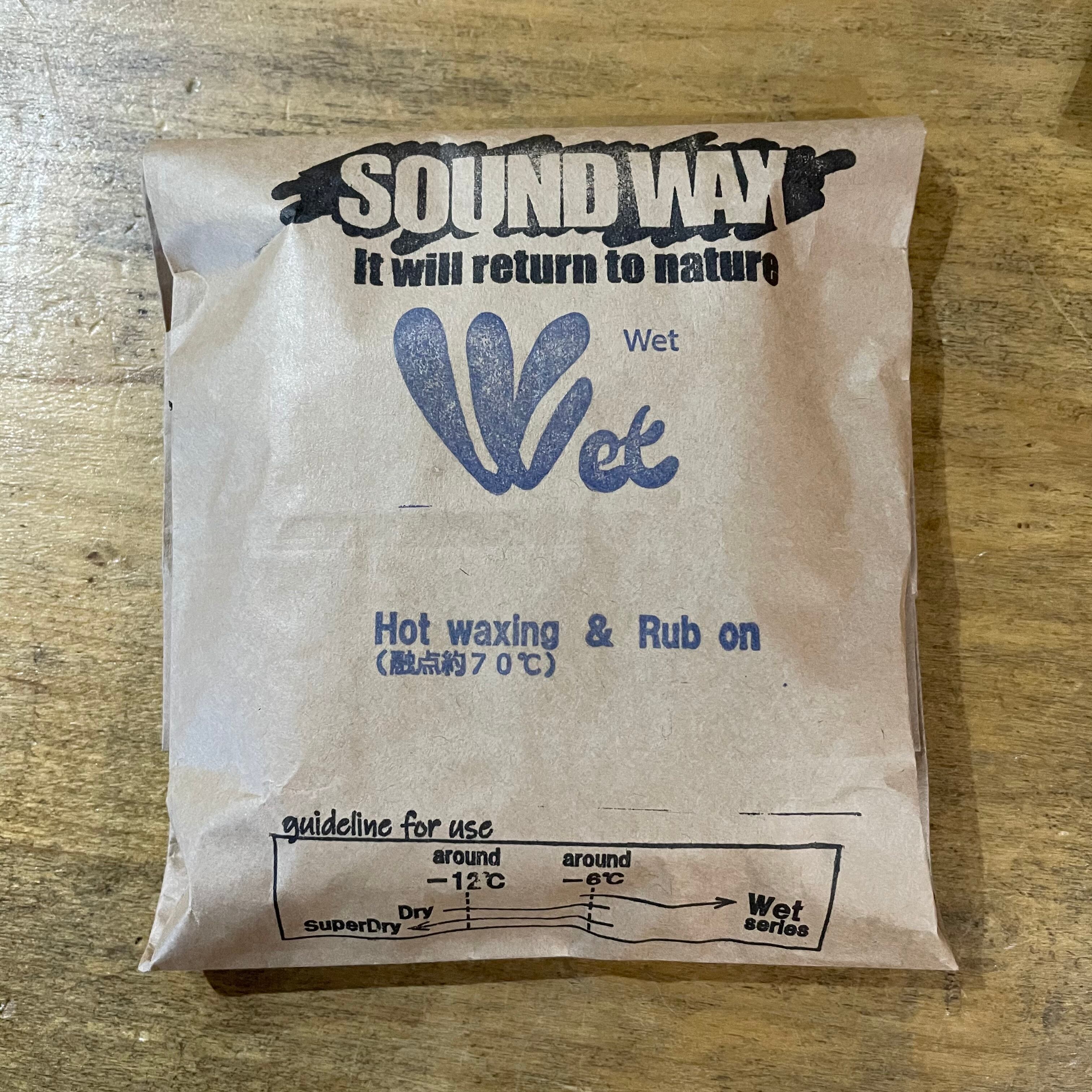 SOUND WAXは人間を含めた自然環境に過度の負担をかけない、ということを根底にワックスの製作に取り組んでいます。フッ素やナノ粒子などを使用せず、パラフィンを主成分に天然由来の成分を添加しています。 融解温度80℃ 生塗からWAXが液体に変わるくらいのスピードでアイロン掛けするのがお勧めです。
