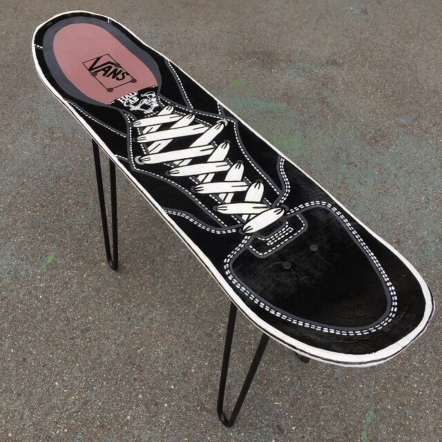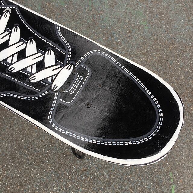 現在は集まった廃デッキを1枚ずつ奇麗にしてペイントしています。直接ご連絡いただければ使い古したシューズの傷や破れ、汚れも再現して制作することも可能です。また思い入れの自身の使用済みデッキをベースにすることも可能です。